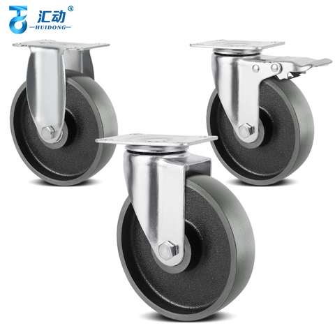 Orta görev 3/4/5 inç döner fren kalınlaşmış tekerlek dökme demir yüksek sıcaklık yük katı endüstriyel ekipman arabası tekerleri